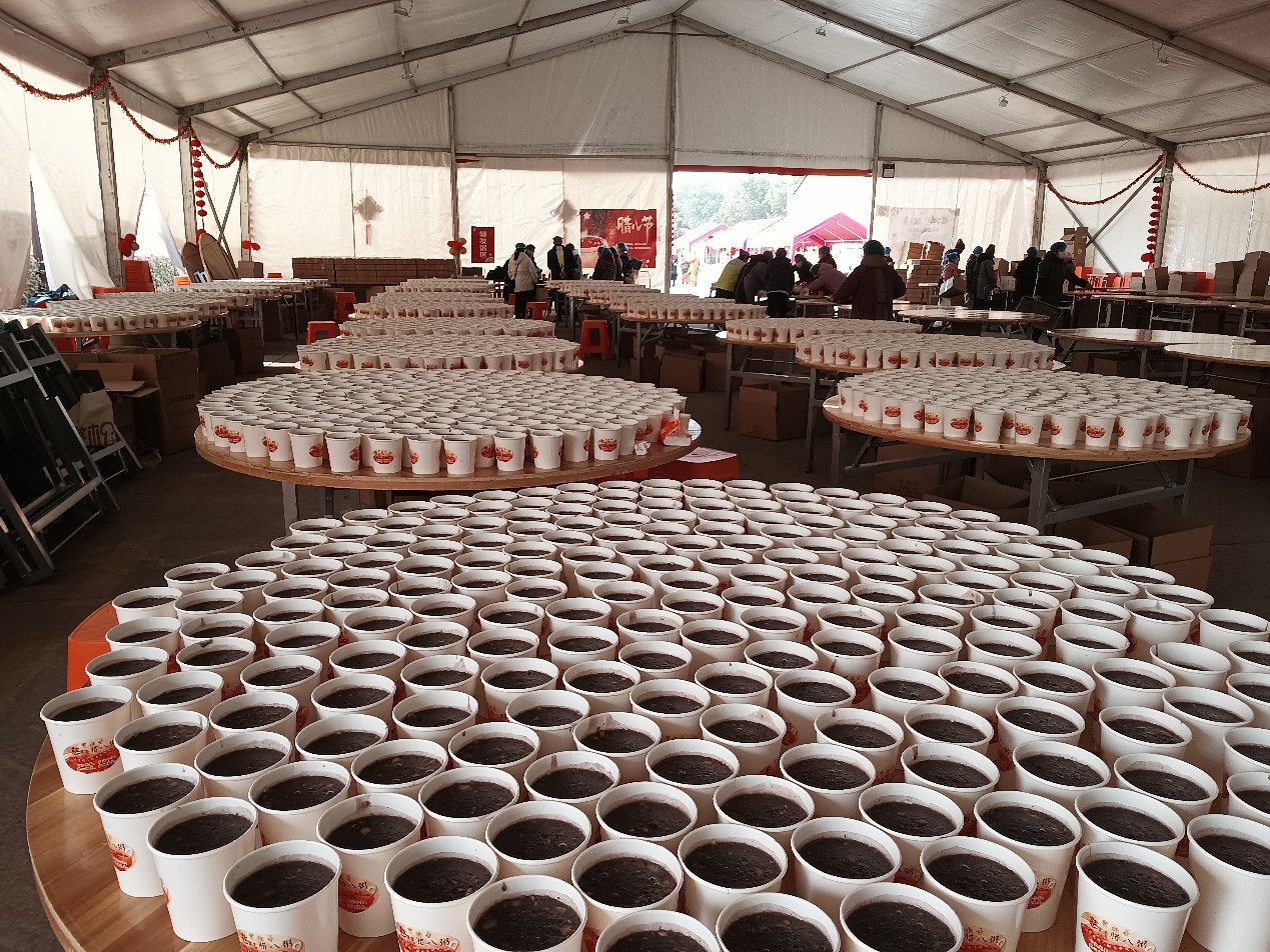 一碗"佛粥"吃起來很美味、簡單,但親身經(jīng)歷熬制及分裝等一系列工序,才知道他包含著很多的辛勤和精制技術(shù):首先食材獎精挑細選,注重搭配;浸泡要耐心,軟糯是前提;熬制要嚴格掌控火候,每一鍋成品都要熬時100多分鐘,熬制工藝精細有序十分講究,1.2米的大鍋洗刷干凈入灶,先將280斤的清水和9種食材一起入鍋,燒開至沸騰,轉(zhuǎn)中火熬制20分鐘,視需要攪拌,不能粘鍋,然后放入4種食材中火熬制50分鐘,這步驟最關(guān)鍵,要不停攪拌免粘鍋,最后放入4種食材不停攪拌小火熬制10分鐘起鍋;第二步要進行消毒機械分裝,一千余平方的臨時車間,近幾百名義工分別忙祿地完成轉(zhuǎn)運單排散熱、分箱封裝、入庫等多道工序。